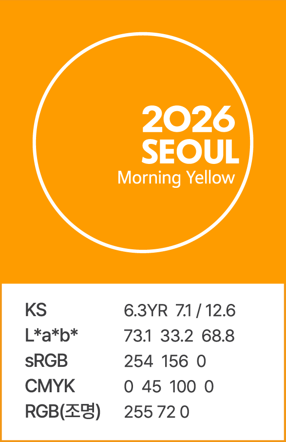 2026년 서울색 ‘모닝옐로우’에는 이러한 시민들의 바람, ‘무탈한 하루를 여는 맑고 편안한 순간’, ‘오늘은 맑았으면 해’를 담았다고 시는 설명했다.