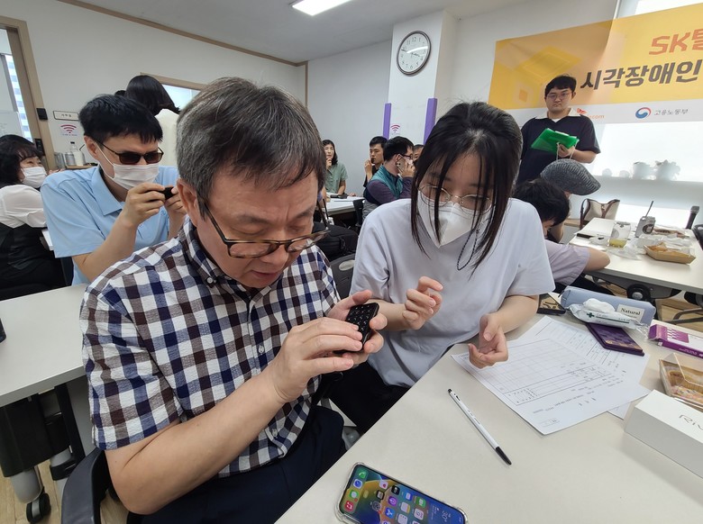 이번 교육은 9일 오후 서울 종로구시각장애인쉼터에서 진행되었으며, 시각장애인을 위한 스마트폰 기초 조작법과 보조기기를 활용해 앱을 활용하는 방법을 학습하는 프로그램으로 구성됐다.