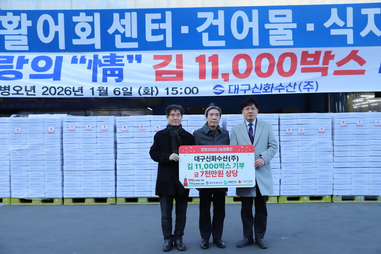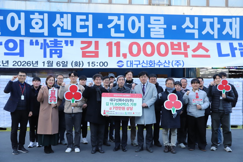 고중근 대구신화수산 대표는 “작은 정성이지만, 이번 기부가 도움이 필요한 이웃들에게 따뜻한 마음으로 전해지길 바란다”며 “앞으로도 지역사회에 보탬이 될 수 있도록 지속적인 나눔 활동을 꾸준히 이어가겠다”고 말했다.