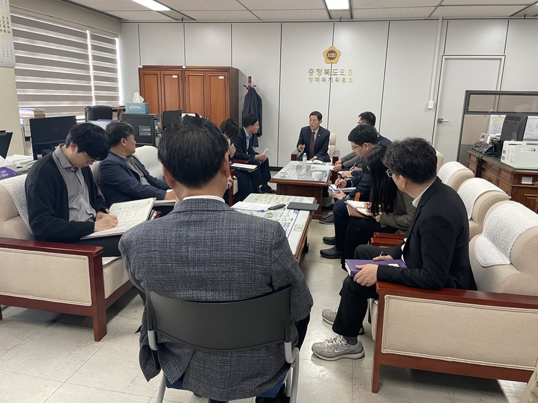 [충북 세계타임즈=이현진 기자] 충북도의회 정책복지위원회(위원장 이상식)는 10일 위원회 의원실에서 김현문 의원(청주14) 주재로 이동우 의원(청주1)을 비롯해 기획조정실, 재난안전실, 충북연구원 관계자들이 참석한 가운데 충북연구원 업무협의를 위한 간담회를 가졌다.