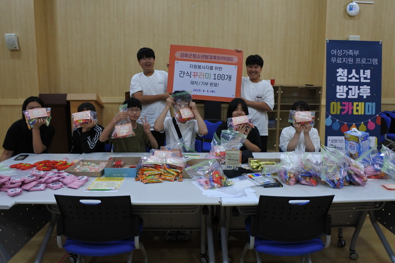 [강화군 세계타임즈=심하린 기자] 강화군 청소년방과후아카데미는 지난 5일, 아카데미 참여 청소년들이 자원봉사자를 위한 간식 꾸러미 100개를 직접 만들어 인천광역시자원봉사센터에 기부했다고 밝혔다.