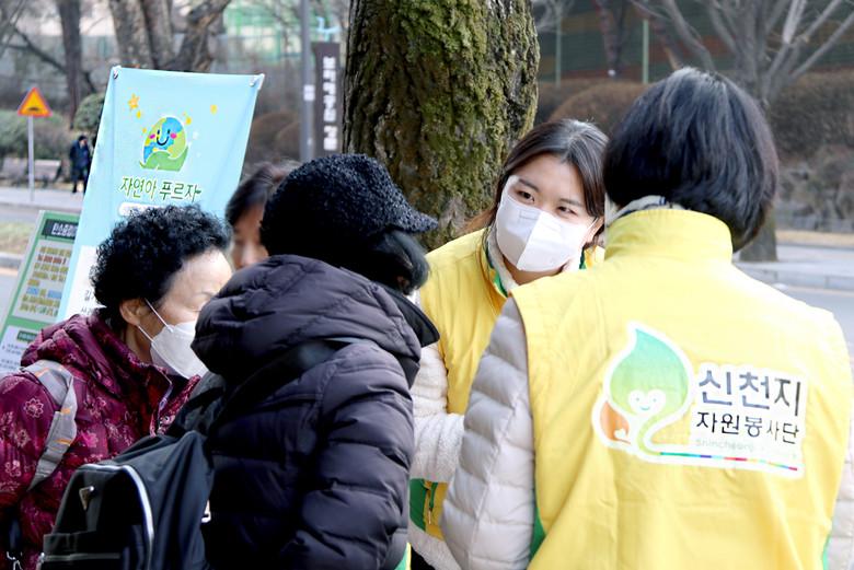 참여한 시민들은 봉사단에게 정부가 시행하는 ‘2050 탄소중립’에 대한 설명을 듣고 일상에서 탄소중립을 실천할 방안인 ▲대중교통 이용 ▲플라스틱 줄이기 ▲식물심기 및 산불 예방 ▲천연 재료 물건 사용 ▲올바른 분리배출 및 수거 등에 대한 설문에 참여했다.