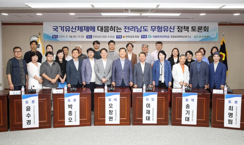 [전남 세계타임즈=우덕현 기자] 전라남도의회 이재태 의원(더불어민주당ㆍ나주3)이 좌장을 맡은 ‘전라남도 무형유산 정책 토론회’가 지난 7월 18일(화) 전라남도의회 초의실에서 개최됐다.