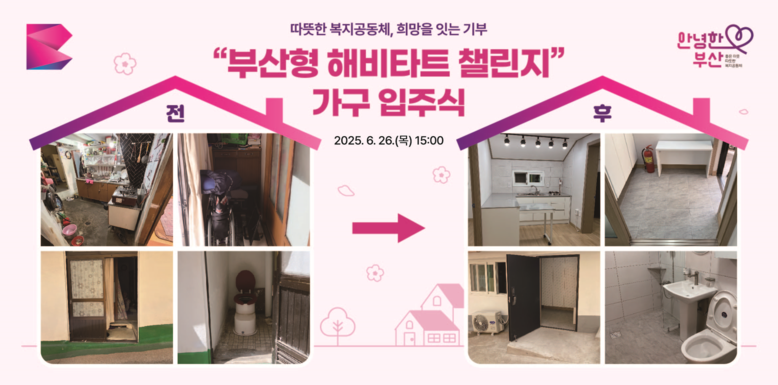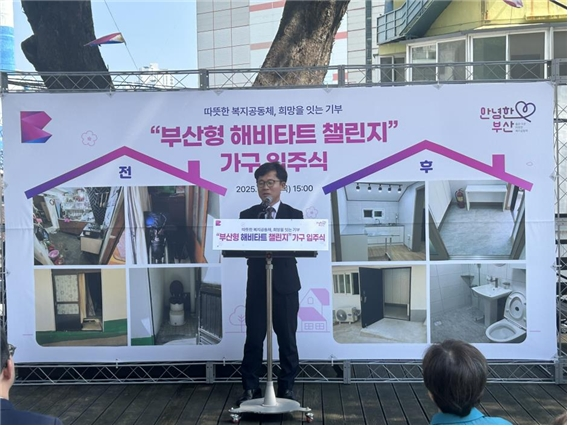 '부산형 해비타트 챌린지' 사업은 아이스버킷 챌린지의 '집 고쳐주기' 버전으로 민간(기업·개인) 기부 릴레이를 통해 노인 가구의 노후화된 주택을 고령층 눈높이에 맞춰 생활하기에 안전하고 편리한 구조로 공간을 개조해 주는 사업이다.