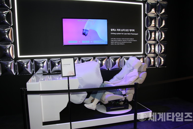 레저와 휴식 목적에 맞게 개발된 엠비전 HI도 전시됐다. 차량 내부에는 자유롭게 위치와 방향을 바꿀 수 있는 의자와, 시선 인식 기술이 탑재된 대형 디스플레이를 설치했다. 시선을 돌리고 손을 움직이는 동작만으로 영화 감상이나 인터넷 쇼핑 등 원하는 콘텐츠를 편리하게 볼수 있다.
