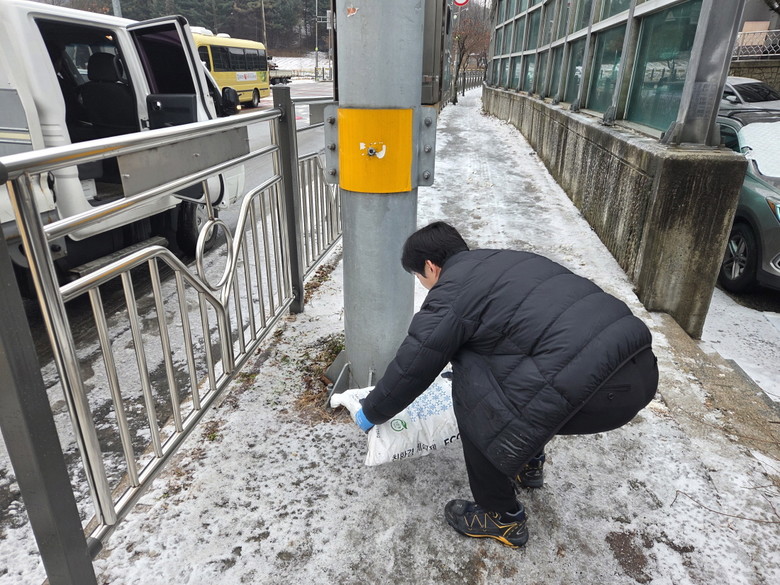 이번 조치는 이면도로와 경사로, 버스정류장 주변 등 겨울철 결빙 위험이 높은 지역을 중심으로 추진됐으며, 기존에 설치된 제설함에 대한 점검과 함께 제설함이 없는 구간에도 주민들이 필요 시 즉시 사용할 수 있도록 접근성이 좋은 장소에 제설제를 추가로 비치했다.