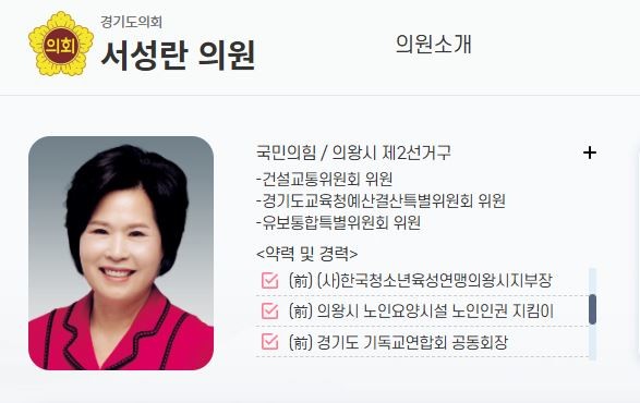 서 의원은 목사 출신으로 도의원이 되기 전 의왕시기독교연합회 회장을 맡았었고, 경기도기독교연합회 공동회장을 역임한 바 있다. 해당 영상에 따르면 서 의원은 지난달 27일 경기도 일산의 위치한 일산광림교회의 수요예배 설교자로 강단에 섰다.