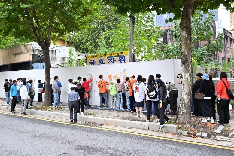 지난 12일에는 가설울타리 3구간에서 한화이글스의 우승을 기원하는 벽화 그리기 행사를 진행했다. 이날 행사에는 대전한화생명볼파크 인근 대흥, 대사, 부사, 문창동 주민을 등이 함께 했다.