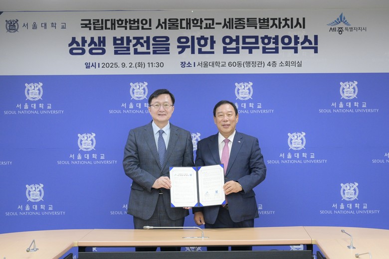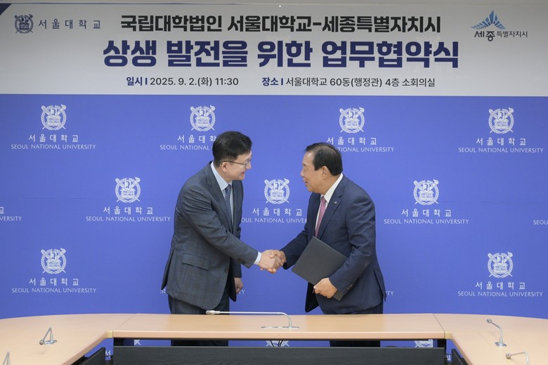 세종특별자치시(시장 최민호)는 2일 서울대학교 본교에서 서울대학교(총장 유홍림)와 미래인재 양성 등 교육 협력을 위한 업무협약을 체결했다고 밝혔다.