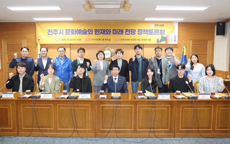 [전주시의회=세계타임즈 이상호 기자] 전주시의회는 24일 지역 문화예술계의 현장 의견을 수렴하고, 향후 발전 방향 모색을 위한 정책토론회를 전주시의회 온혜정(우아1·2, 호성동), 이성국(효자5동) 의원 주최로 지난 23일 시의회 소회의실에서 열었다고 밝혔다.