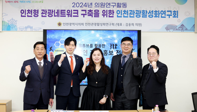인천시의회 의원 연구단체인 ‘인천형 관광네트워크 구축을 위한 인천관광활성화연구회(대표의원 김용희)’는 최근 행정안전위원회 세미나실에서 김영희(국·연수2) 대표의원을 비롯해 이봉락(국·미추홀3) 의장, 조현영(국·연수4)·김대영(민·비례) 의원, 인천재능대학교 박선미(디지털마케팅학과) 외래교수 등이 참석한 가운데 인천의 관광산업 발전과 지속 가능한 관광 네트워크 구축을 논의하는 세미나를 개최했다고 25일 밝혔다.