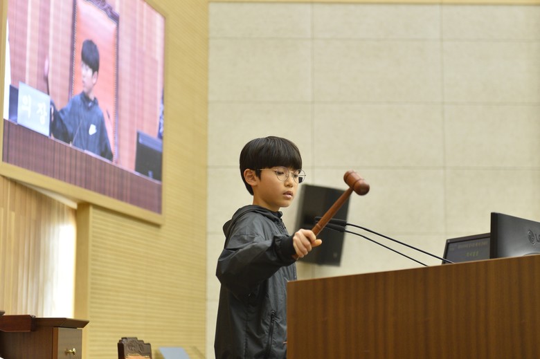 한편 3일 본회의장에서는 보람초등학교 5학년 참가 학생들이 의회 홍보영상을 시청하고 모의 본회의를 진행한 데 이어 의회 퀴즈 및 투표.개표를 체험할 수 있는 선거관리위원회 프로그램에 참여했다.