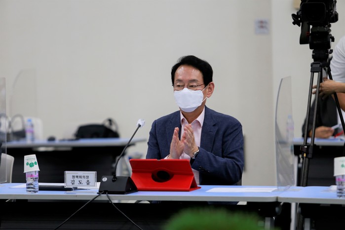 [세계타임즈 이진화 기자]국민의힘은 내년도 국비확보사업 및 지역현안을 파악하기 위해 6일 오후 2시 부산시청 1층 대회의실에서 열린 '국민의힘 부산·울산·경남 예산정책협의회'에서 부산출신의 김도읍 정책위의장이 박수를 치고 있다.