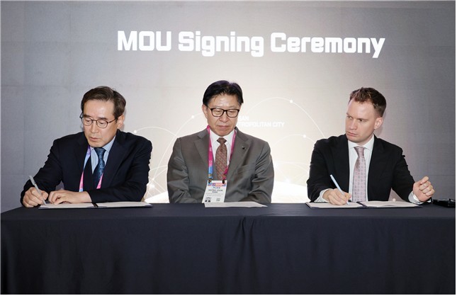 사진 좌측부터 부산경제진흥원장 송복철, 부산시장 박형준, 헝가리 수출진흥청(HEPA) 부대표 Dr. Gábor Peter Artner