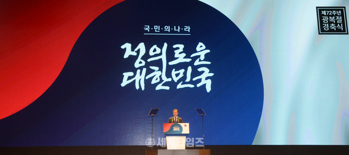 문재인 대통령이 15일 오전 제72주년 광복절 경축식이 열린 서울 종로구 세종문화회관에서 경축사를 하고 있다. 2017.08.15.