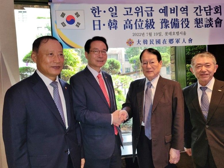 [세계타임즈 백진욱 기자] 대한민국 재향군인회(이하 ‘향군’) 신상태 회장이 지난 19일 롯데호텔에서 일본 모리모토 사토시 전 방위상 등 예비역 고위 인사들과 조찬 간담회를 겸했다.