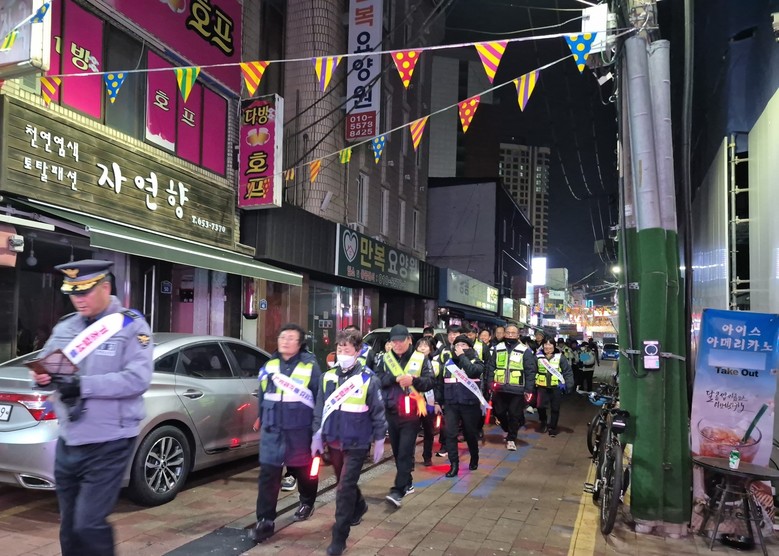 대원들은 오후 8시부터 각 권역별 집결지인 ▲평택역 2번 출구(남부권), ▲송탄출장소 앞 분수대(북부권), ▲안중파출소 앞(서부권)에서 출발하여, 유흥가 및 주택 밀집 지역 등 범죄 취약지구를 중심으로 집중 순찰을 실시했다.