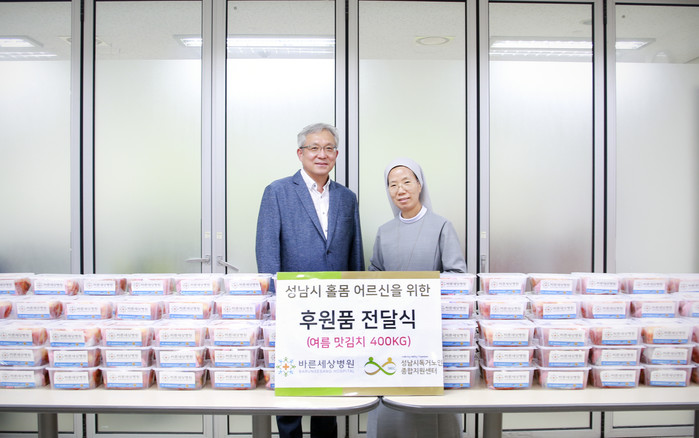 바른세상병원과 성남시 독거노인종합지원센터는 지난 2018년부터 업무협약을 통해 소외계층 어르신들의 건강 지원과 삶의 질 향상을 위한 서비스에 동참할 것을 약속하며 관계를 맺어왔다. 이날 행사에는 바른세상병원 임직원과 성남시 독거노인종합지원센터 직원들이 함께 참여했으며, 더위에 입맛이 떨어진 홀몸 어르신들에게 좋은 선물이 되길 바라는 마음으로 김치를 전달했다.