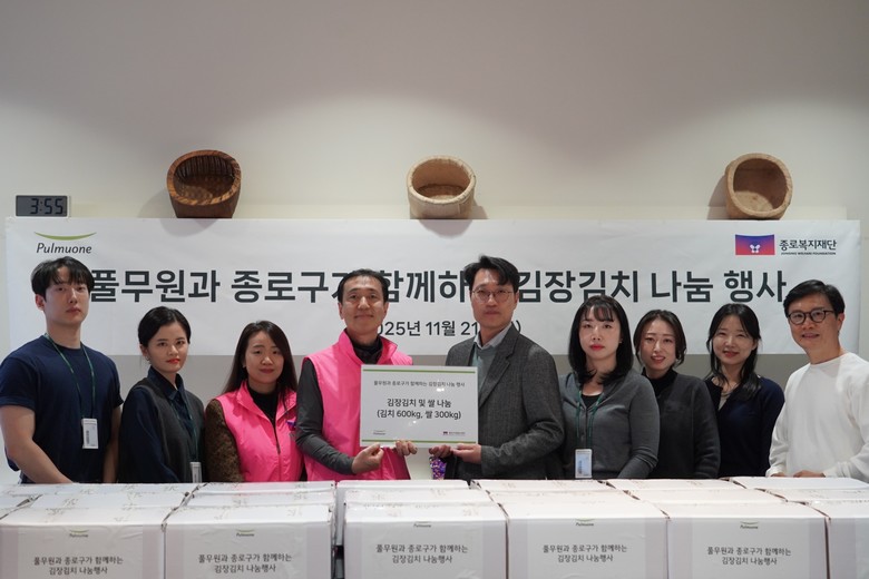 ‘김장김치 나눔’ 행사는 2016년부터 이어져 온 뮤지엄김치간의 대표 사회공헌 프로그램으로, 매년 종로구 자원봉사센터와 협력해 지역 내 홀몸 어르신과 취약계층 가구를 지원하고 있다. 올해는 21일 종로구 인사동에 위치한 뮤지엄김치간 6층 ‘김장마루’에서 ‘풀무원과 종로구가 함께하는 김장김치 나눔 행사’를 진행했다.