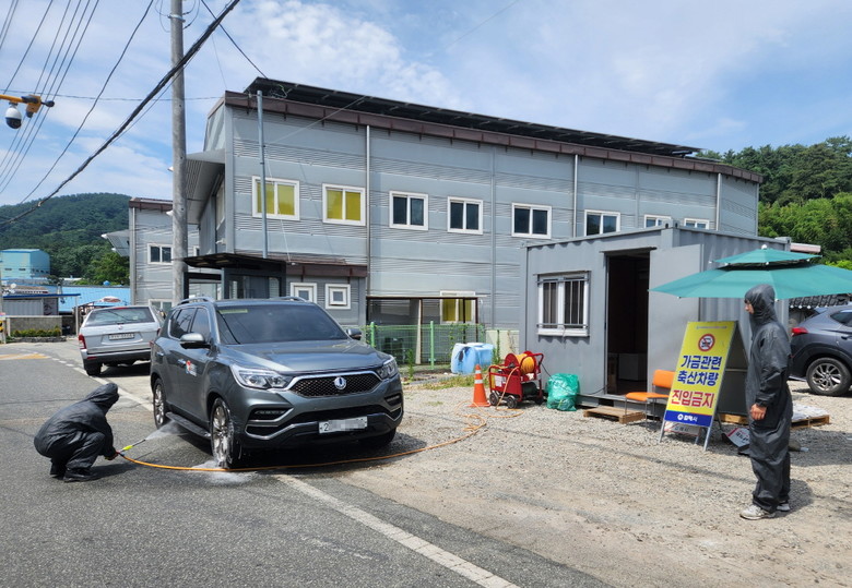 | ▲ 김해 통제초소 차량 소독 |