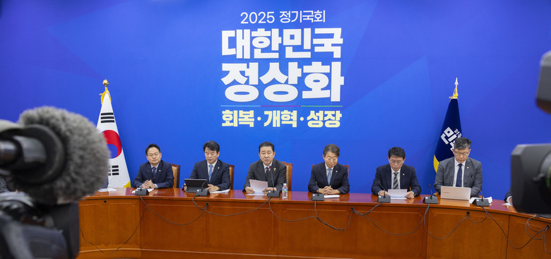 더불어민주당 김병기 원내대표가 23일 국회에서 열린 원내대책회의에서 정기국회 내 쟁점법안 처리 의지를 밝히고 있다. 2025.9.23