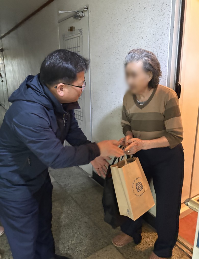 이날은 파리바게트 수원영통점에서 후원해준 롤케이크 5개를 영통1동 지역사회보장협의체 위원과 신한길 영통1동장이 홀몸어르신 가정에 방문하여 간식을 직접 전달하고 안부 확인 등 말벗서비스를 진행했다.