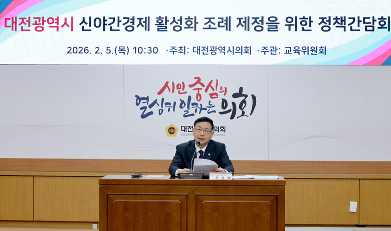 [대전 세계타임즈=이채봉 기자] 대전시의회는 5일 시의회 소통실에서 ‘대전광역시 신야간경제 활성화 조례 제정을 위한 정책간담회’를 개최했다.