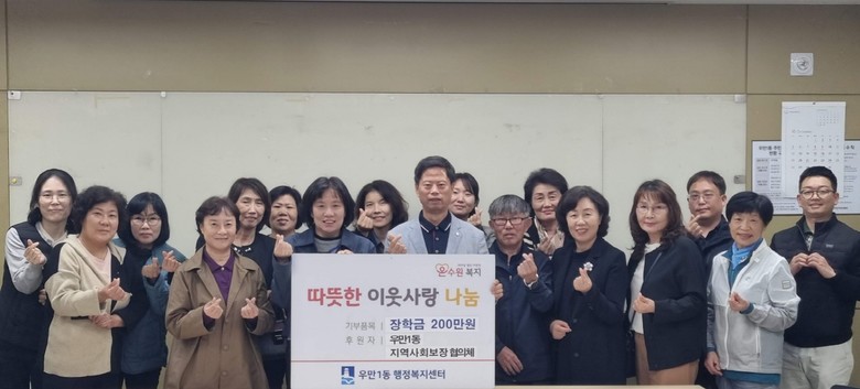 김부성 우만1동 지역사회보장협의체 위원장은 “경제적 어려움 때문에 배움의 꿈을 포기하는 일이 없기를 바란다”며 “이번 장학금이 학생들이 꿈을 향해 나아가는 든든한 밑거름이 되었으면 한다”고 말했다.