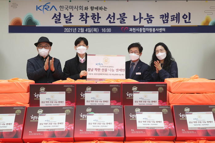 [세계타임즈 심귀영 기자]한국마사회(회장 김낙순)은 설 명절을 맞아 사업장 소재지역 인근 소외계층에 농축산물을 전달했다고 밝혔다. 소외계층에 전달된 농축산물은 인근 전통시장, 사회적 경제기업에서 구매해 코로나19로 침체된 농가에도 힘이 될 수 있게 했다.