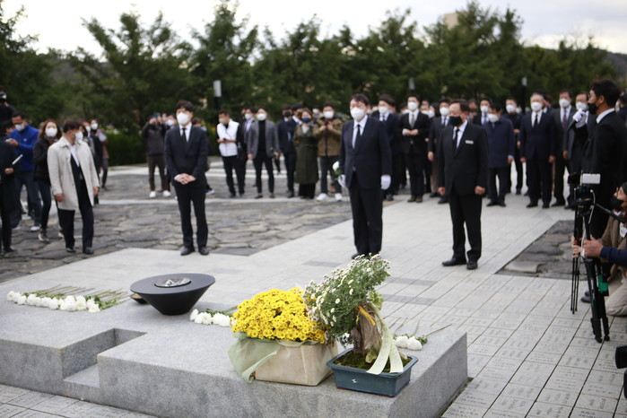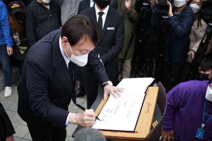 [세계타임즈 이진화 기자]윤석열 국민의힘 대선후보는 11일 오후 경남 김해 봉하마을에 고(故) 노무현 전 대통령 묘소를 을 참배한 뒤 "노 전 대통령의 정신을 발 배우겠다"고 밝혔다.