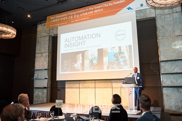 [세계타임즈 이영진 기자] 세계적인 상용차 제조업체 볼보트럭이21일 서울 플라자호텔에서 개최된 ‘스웨덴의 차세대 교통 중심 스마트시티 세미나’에 참석해 안전하고 지속가능한 스마트 시티 구축을 위한 볼보그룹의 혁신적인 미래 기술 사례를 공유했다.