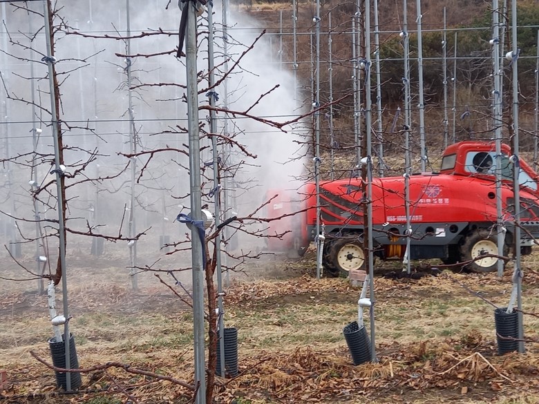 과수화상병은 세균병으로 사과·배 등 장미과 식물의 잎·꽃·가지·줄기·과일 등이 마치 불에 타서 화상을 입은 것과 같이 되어 조직이 검게 마르는 피해를 주며 고온에서 전파속도가 빠른 식물의 법정 전염병으로 발병 시 과원을 폐원해야 하는 심각한 과수병 중 하나다. 1차 방제는 사과와 배 신초 발아 전까지 약제 살포를 완료해야 하고, 2차 약제는 전체 과수원의 10~20% 꽃 개화 시, 3차 약제는 2차 약제 방제 후 5~7일 후 방제시기를 반드시 준수하여 살포해야 피해 예방 효과를 높일 수 있다.