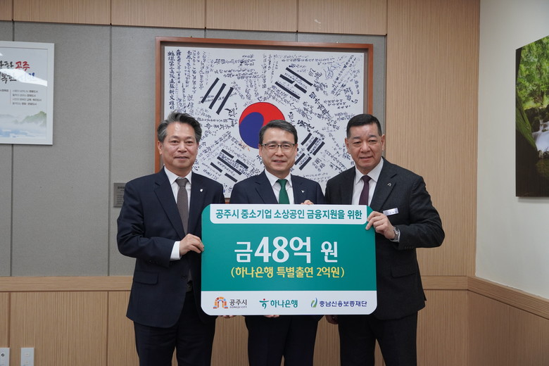 이번 협약은 공주시와 하나은행이 각각 2억 원씩 총 4억 원을 출연하고, 충남신보는 이를 재원으로 48억 원 규모의 특례보증을 공주시 소상공인들에게 추가로 공급하기 위해 마련됐다.