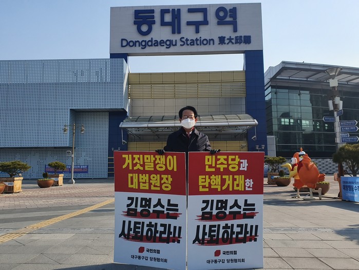[세계타임즈 이채봉 기자]류성걸 국회의원(국민의힘, 대구 동구갑)이 설 연휴를 맞아 10일과 11일 양일에 거져 오전 10시 동대구역 앞에서 김명수 대법원장의 사퇴를 촉구하는 1인시위를 벌인다.
