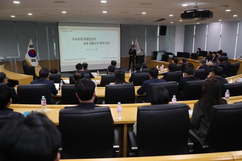 [세계타임즈 = 이영진 기자] 한국농어촌공사는 26일 성주인 농촌경제연구원 선임연구위원을 초청해 ‘도농상생 균형발전과 농촌 생활인구 확대 전략’을 주제로 특별강연을 개최했다.