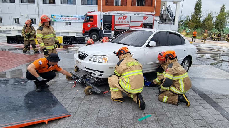 이번 훈련에는 도내 18개 소방서 구조대원 160여 명이 참여했으며 전기차 화재 이론 및 가상 화재 진압, 숙달훈련 등을 통해 실전 대응 역량을 강화했다.