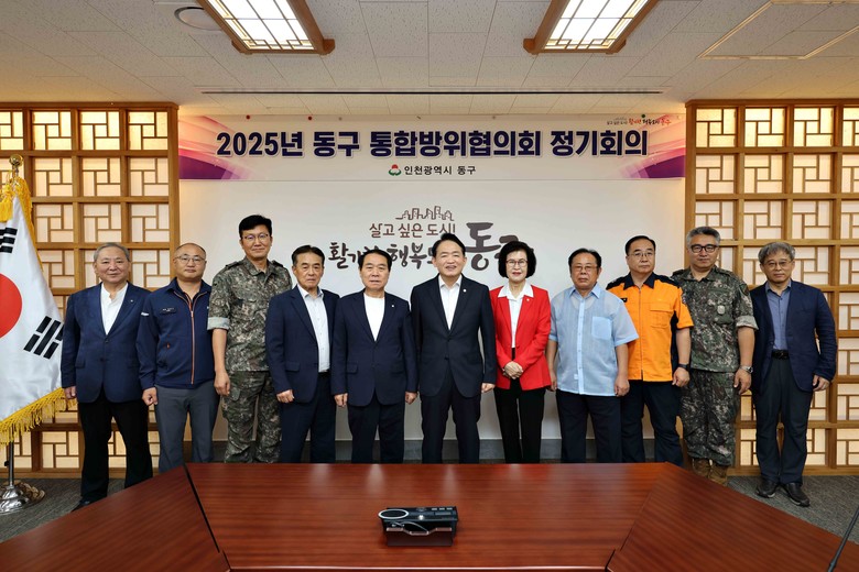 [동구 세계타임즈=심하린 기자] 인천 동구(구청장 김찬진)는 지난 13일 구청 갈매기홀에서 지역통합방위태세 확립을 위한 ‘2025년 3분기 인천광역시 동구 통합방위협의회’를 개최했다고 밝혔다.