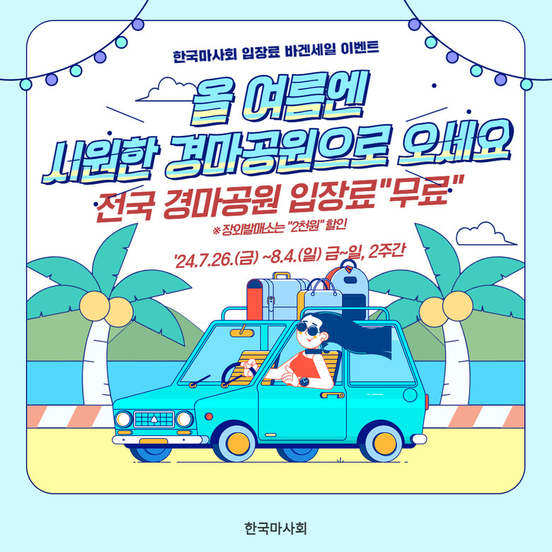 서울 경마공원에서는 “썸머 업고 튀어(야간영화제, 워터건 서바이벌 등)”, 부산 경마공원에서는 “블루밍 워터 페스티벌”, 제주 경마공원에서는 “몽생이 아쿠아 파티” 이벤트가 진행된다.