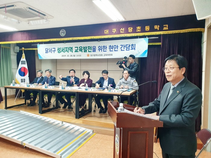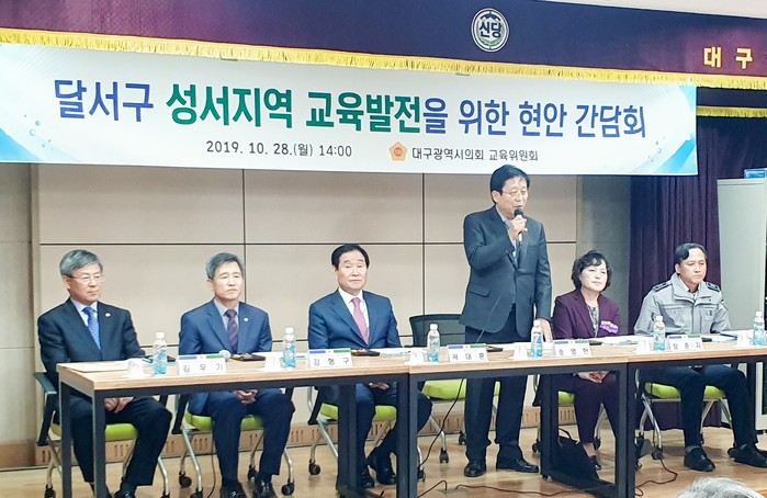 [대구=세계타임즈 한성국 기자] 대구시의회 교육위원회는 10월 28일 오후 2시 대구신당초등학교 시청각실에서 달서구 성서지역 15개교 학교장, 학교운영위원 및 학부모 등을 초청해 현장의 목소리를 청취하고, 교육현안 문제 해결 및 의정활동 반영을 위한 간담회를 개최하였다.
