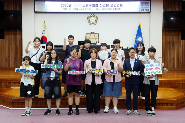 [남동구 세계타임즈=심하린 기자] 인천 남동청소년센터는 최근 센터 소속 참여·자치기구 및 방과후아카데미 청소년들이 남동구의회 본회의장에서 ‘청소년 모의의회 체험’에 참여했다고 14일 밝혔다.