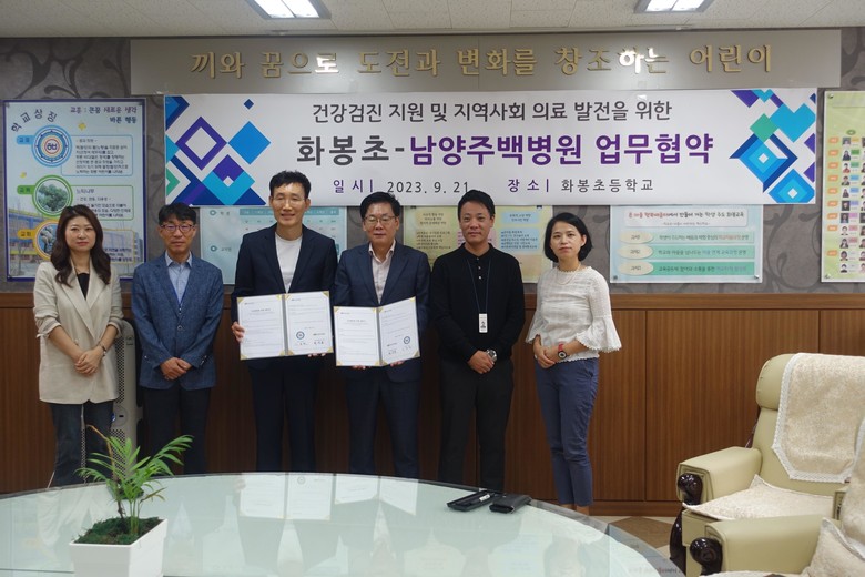 남양주백병원은 28년간 남양주 의료 지킴이로 지역사회 의료를 담당해온 기관이다. 협약식에는 화봉초등학교 서동연 교장을 비롯하여 남양주백병원 최선종 병원장을 대신하여 박창기 이사, 이은성 행정본부장, 박소희 홍보팀장이 참석하여 업무협약을 체결하였으며 지역사회 보건향상을 위한 방안을 논의하고 상호 신뢰와 존중을 바탕으로 공동의 발전을 도모하기로 하였다.
