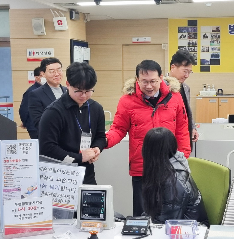 이번 방문은 설연휴 전 늘어난 배송물량으로 고생하는 우체국 직원들을 응원하고, 시민의 생명과 안전을 보호하기 위해 연휴에도 현장을 지켜야 하는 소방대원과 경찰관들의 노고에 감사의 마음을 전하기 위해 마련됐다.