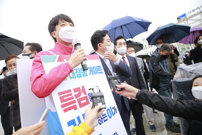 이 대표는 이어 "전국적으로 부동산 투기 때문에 많은 국민들의 공분을 사고 있다"며 "특히 대장동에서 발생한 일은 지방정부와 업자, 법조세력들이 결탁했기 때문에 발본색원할 수 있는 강력한 수사가 필요하다"고 강조했다.