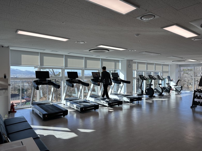 이곳 체력 단련실에는 새로 구비한 장비를 포함해 러닝머신, 자전거 등 다양한 운동 기구가 갖춰져 있으며, 바벨 등 장비도 추가로 확충할 예정이다.