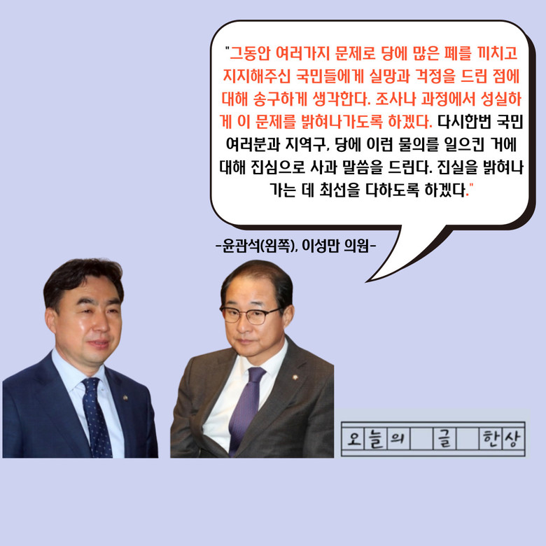 이 의원도 “이런 물의를 일으킨 거에 대해 진심으로 사과 말씀을 드리며 조사 협조에 최선을 다하도록 하겠다”고 밝혔다.