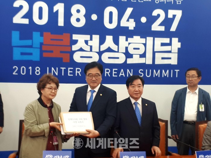 [세계타임즈 이연종 기자]더불어 민병두 의원 사표만류 /당에서설득하겠다 6528명서명부 전달 사진=이연종기자