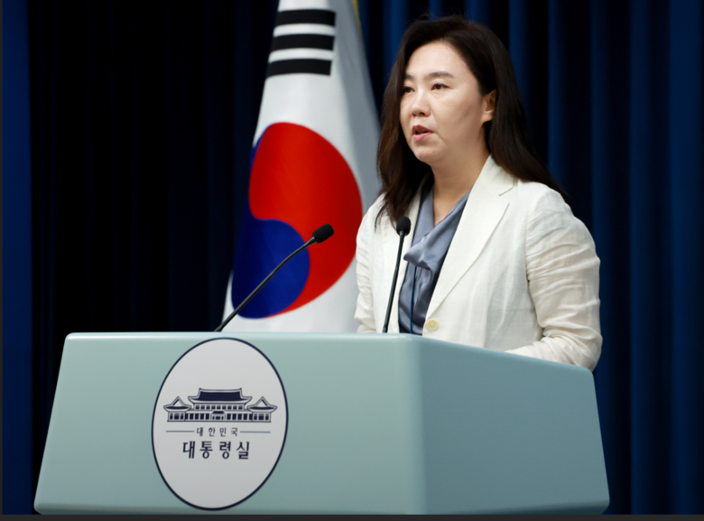 강유정 대통령실 대변인이 13일 서울 용산 대통령실 청사에서 이재명 대통령의 차관급 추가 인선을 발표하고 있다. 2025.7.13