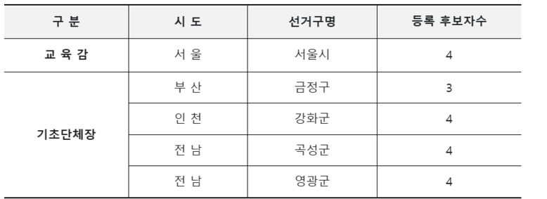 [세계타임즈 = 이채봉 기자] 중앙선거관리위원회는 9월 26일부터 이틀간 진행된 10.16. 재·보궐선거의 후보자 등록을 마감한 결과 5개 선거구에서 총19명이 등록하여 평균 3.8대1의 경쟁률을 보였다고 전했다.