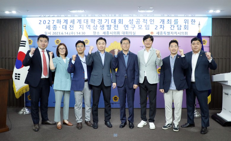 [세종 세계타임즈=이채봉 기자] 세종특별자치시의회 「2027 하계세계대학경기대회의 성공적인 개최를 위한 세종·대전 지역상생발전 연구모임(대표의원 김현미)」은 14일 세종시의회 대회의실에서 2차 간담회를 개최했다.