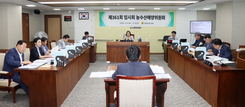 [충남 세계타임즈=이현진 기자] 충남도의회 농수산해양위원회(위원장 이연희)는 5일 제361회 임시회 제2차 회의에서 충남도 농축산국‧해양수산국 소관 2025년 추가경정예산안, 조례안 등과 농축산국 2025년도 출연계획안을 심사했다.